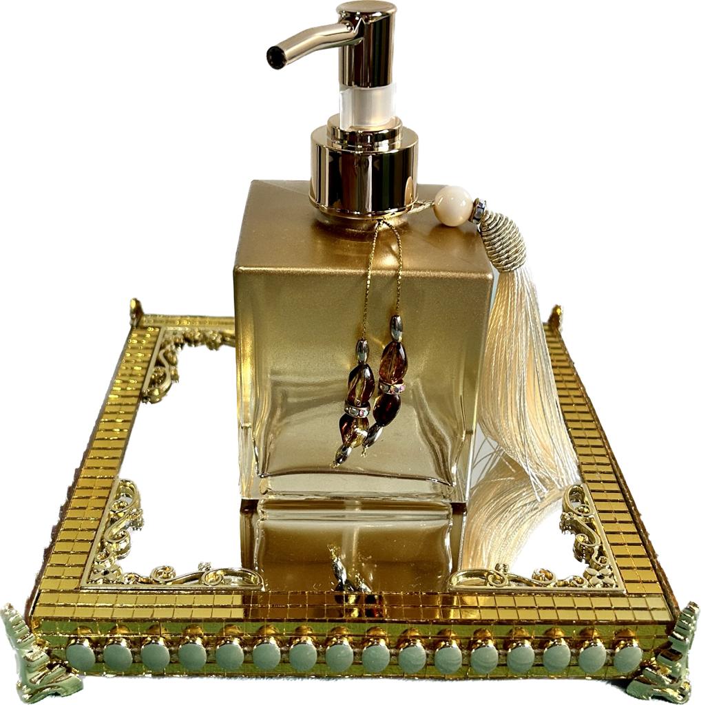 Descubra o luxo artesanal com nossa deslumbrante bandeja espelhada feita à mão, acompanhada de uma saboneteira cheirosa para uma experiência de elegância incomparável. Adorne seu espaço com requinte e exclusividade. Adquira a sua agora e transforme sua rotina diária em um ritual de sofisticação.